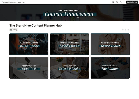 The BrandHive Marketing Hub is a true high-value vault of visibility tools. It’s the tools I use for BrandHive. All built on Notion.